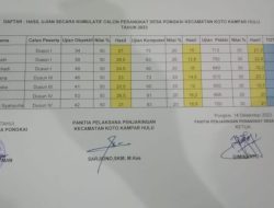 Kampar, reportaseindonesia.id | Setelah melewati proses Ujian Tertulis, Tes Komputer serta Tes Pidato, juri menyatakan 3 orang peserta yang mendapatkan total nilai tertinggi dalam mengikuti penjaringan perangkat desa Kepala Dusun 1,III dan IV adalah sebagai berikut: