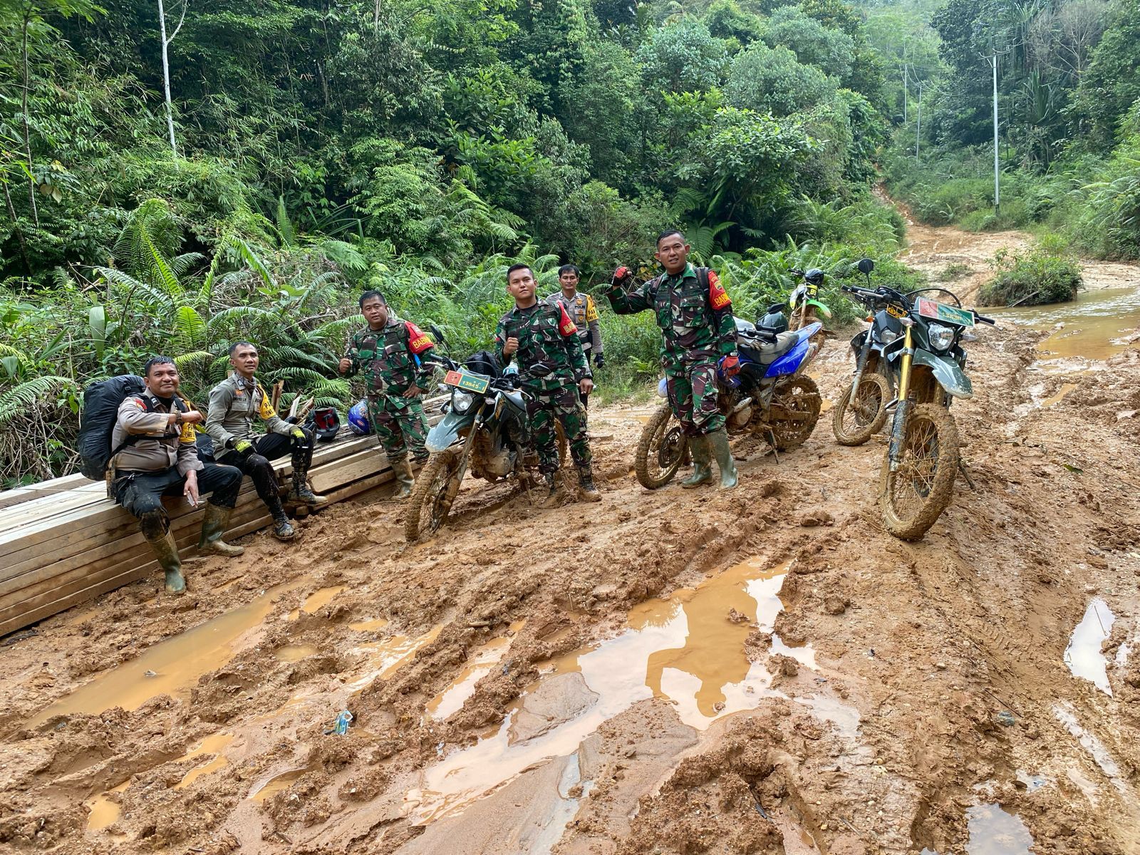 Kampar, reportaseindonesia.id |Petugas TNI dan Polri secara bertahap melakukan pengawalan pergeseran kotak suara TPS dari PPS desa menuju PPK  kecamatan yang berada didesa terisolir jalur darat dan mereka terpaksa harus berjalan kaki serta memanggul kotak suara langsung melewati jalan yang berlubang, rusak dan berlumpur yang berbatas dengan provinsi Sumbar Desa Lubuk Bigau, Kebun Tinggi, Pangkalan Kapas, Tanjung Permai, Batu Sasak, tanjung Karang, Deras Tajak Kecamatan Kampar Kiri Hulu, Kab Kampar, Jum,at sore (16/2/2024).