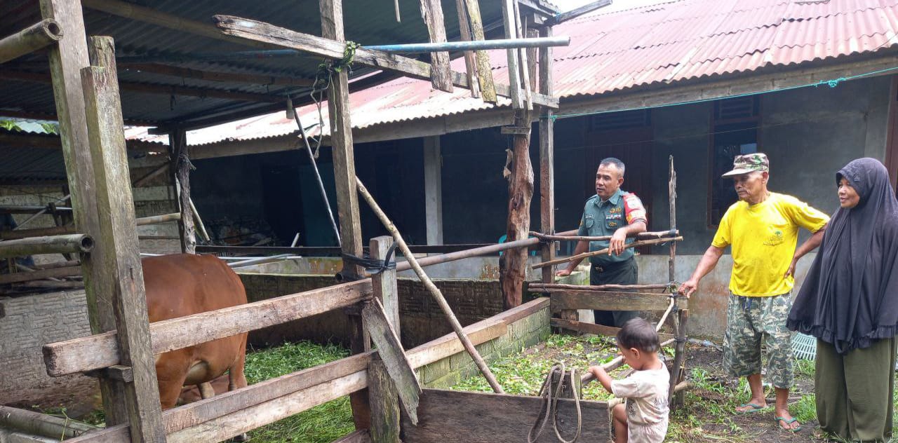 Dikatakan Babinsa Sertu Irian Azwir bahwa Langkah tersebut menindaklanjuti arahan pimpinan kepada jajarannya untuk terus memeriksa kondisi hewan ternak di wilayah binaan dalam rangka antisipasi penyebaran luas wabah PMK.