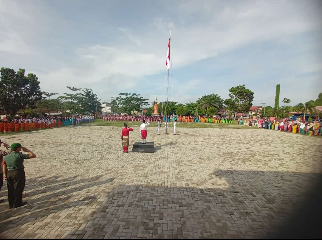 Pelalawan , reportaseindonesia.id |Babinsa Koramil 03 /Bunut Kodim 0313/KPR, Serda Niki Setiawan menghadiri upacara peringatan Hari Pendidikan Nasional (Hardiknas), bertempat Dilapangan Tugu Keris Kecamatan Bunut, Kabupaten Pelalawan, Kamis (2/5/2024).