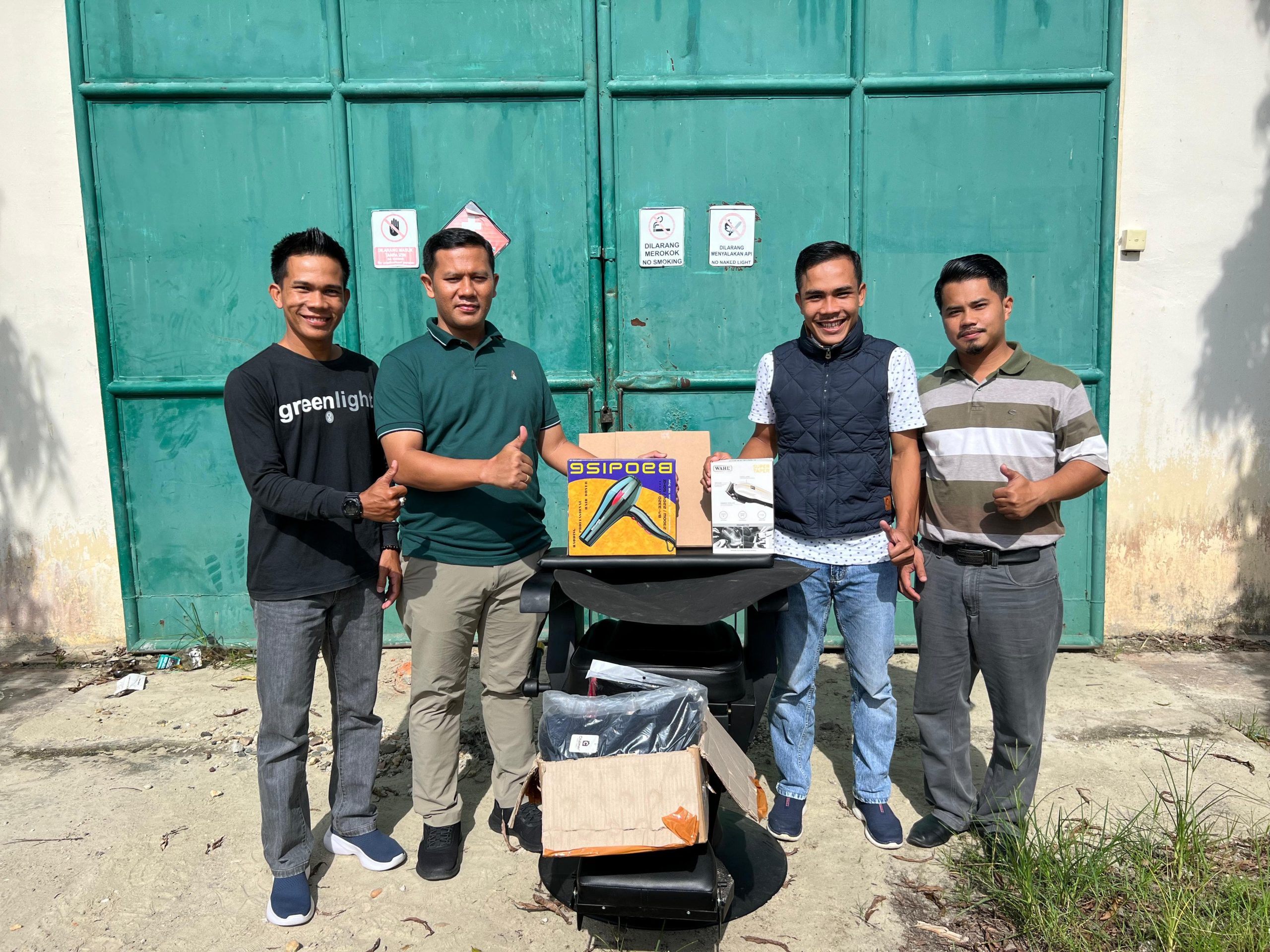Alhamdulilah dari hasil diskusi kami sepakati usaha pengkas rambut dan dengan waktu yang cepat perusahaan langsung memberikan bantuan perlengkapan alat – alat pangkas yang kami terima dengan baik.