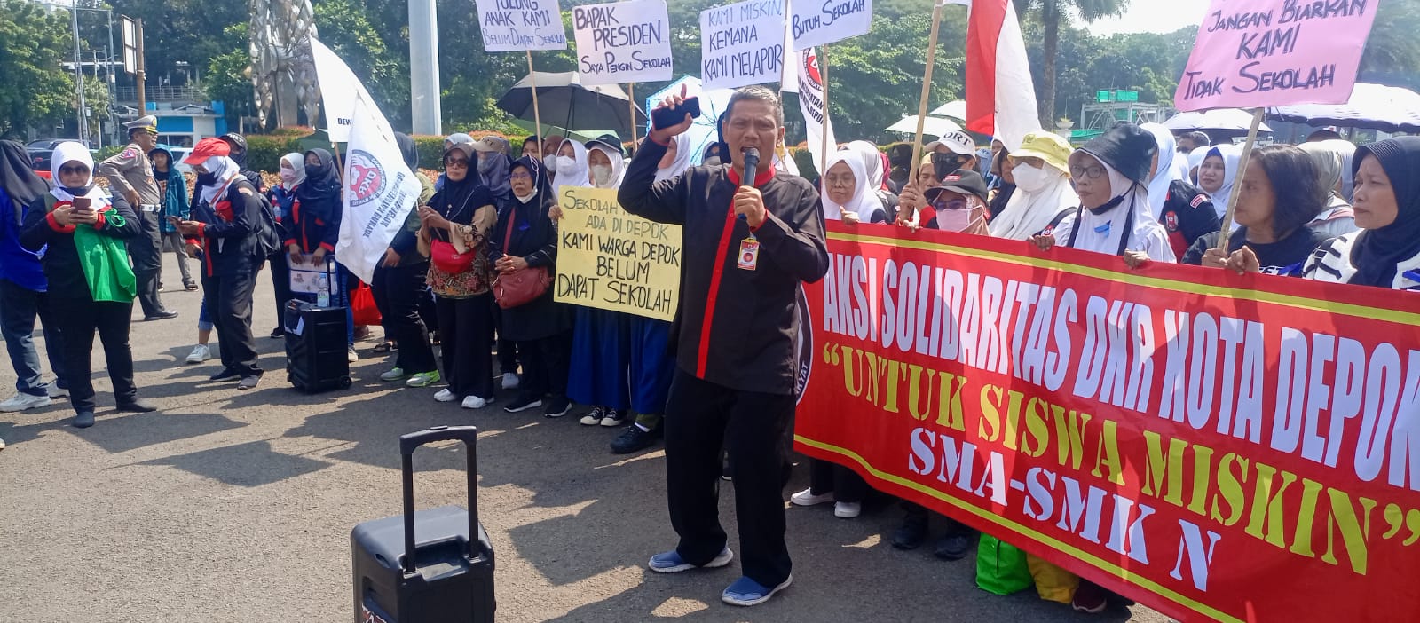 “Kebijakan ini jelas merugikan siswa miskin! Mereka jadi tidak bisa bersekolah karena kuota di sekolah negeri terbatas,” tegas Roy Pangharapan, perwakilan dari Dewan Ketahanan Rakyat (DKR) Kota Depok, saat diwawancarai di depan Kantor Staf Presiden (KSP) pada hari Kamis (11/7/2024).