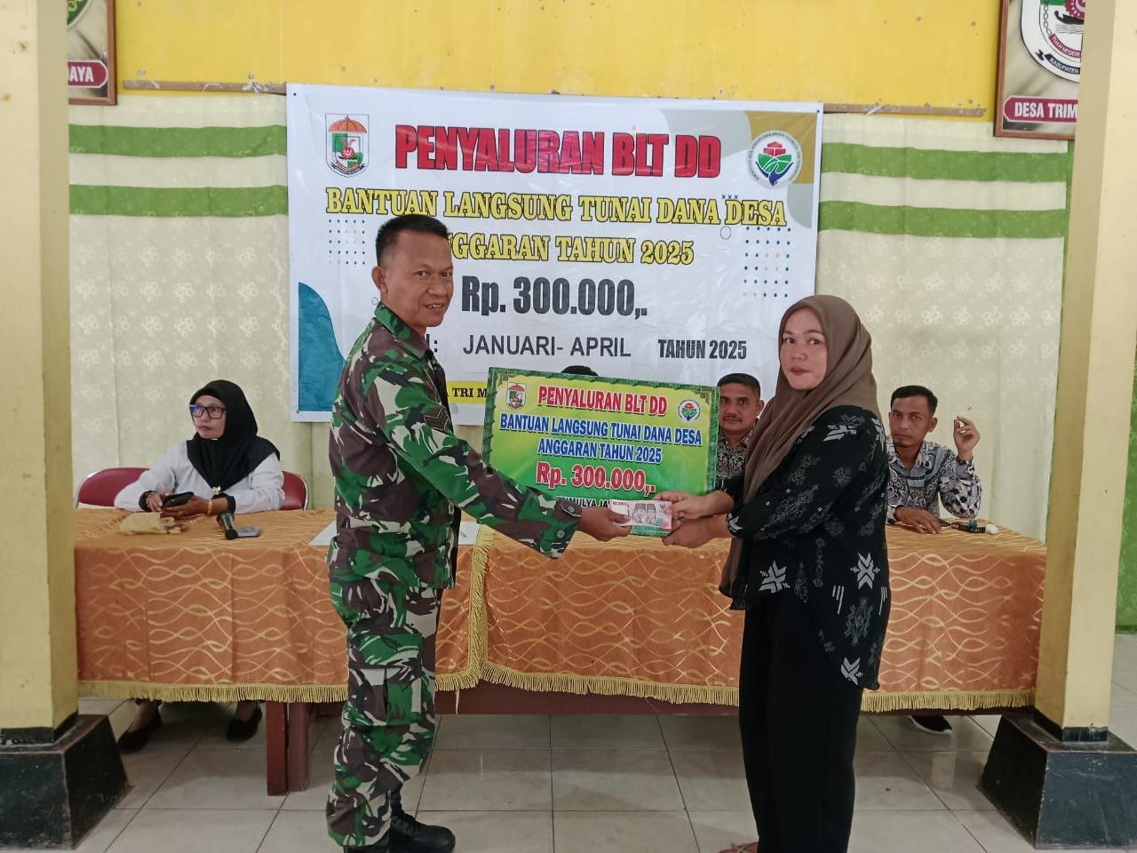 Palawan, reportaseindonesia.id |Babinsa Desa Tri Mulya Jaya , Sertu Nuhajis, turut menghadiri dan mendampingi penyaluran Bantuan Langsung Tunai Dana Desa (BLT-DD) kepada masyarakat yang terdampak secara ekonomi di wilayah binaannya. Kegiatan ini berlangsung di Kantor Desa Tri Mulya Jaya Kec.Ukui Kab.Pelalawan, Rabu,(23/4/2025).