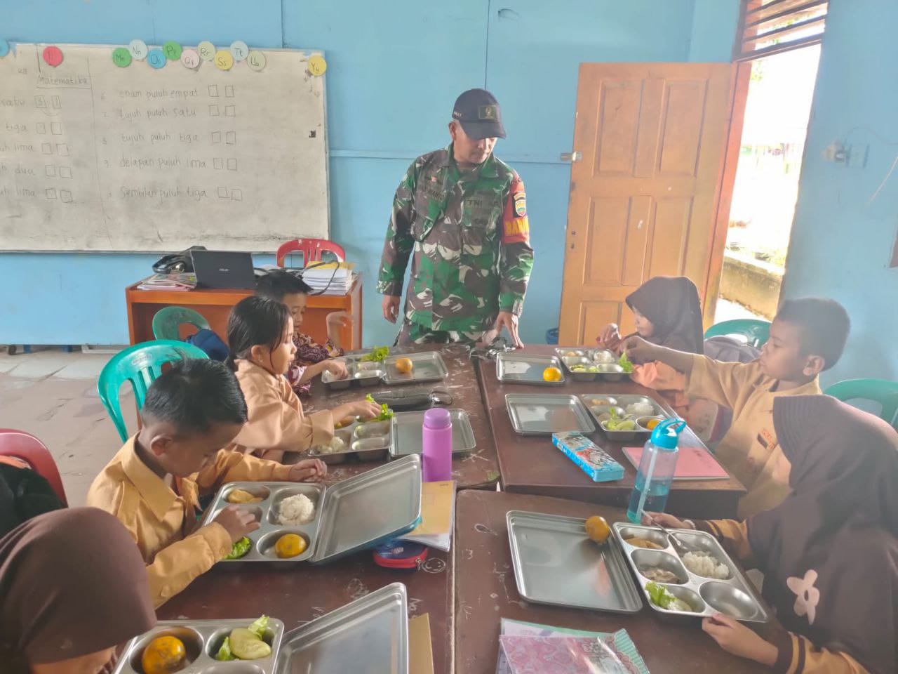 Kampar, reportaseindonesia.id |Babinsa Koramil 16/ Tapung ,Serka Anas Rianto Kodim 0313/Kpr ikut serta dalam pendampingan pendistribusian Makan Bergizi Gratis (MBG) yang diselenggarakan oleh Satuan Pelayanan Pemenuhan Gizi (SPPG) , dimana pelaksanaan program MBG yang ditujukan bagi siswa-siswi TK, SD, SMP, SMA diwilayah Desa Karya Indah, Kecamatan Tapung ,Kebupaten Kampar, Senin (4/8/2025).