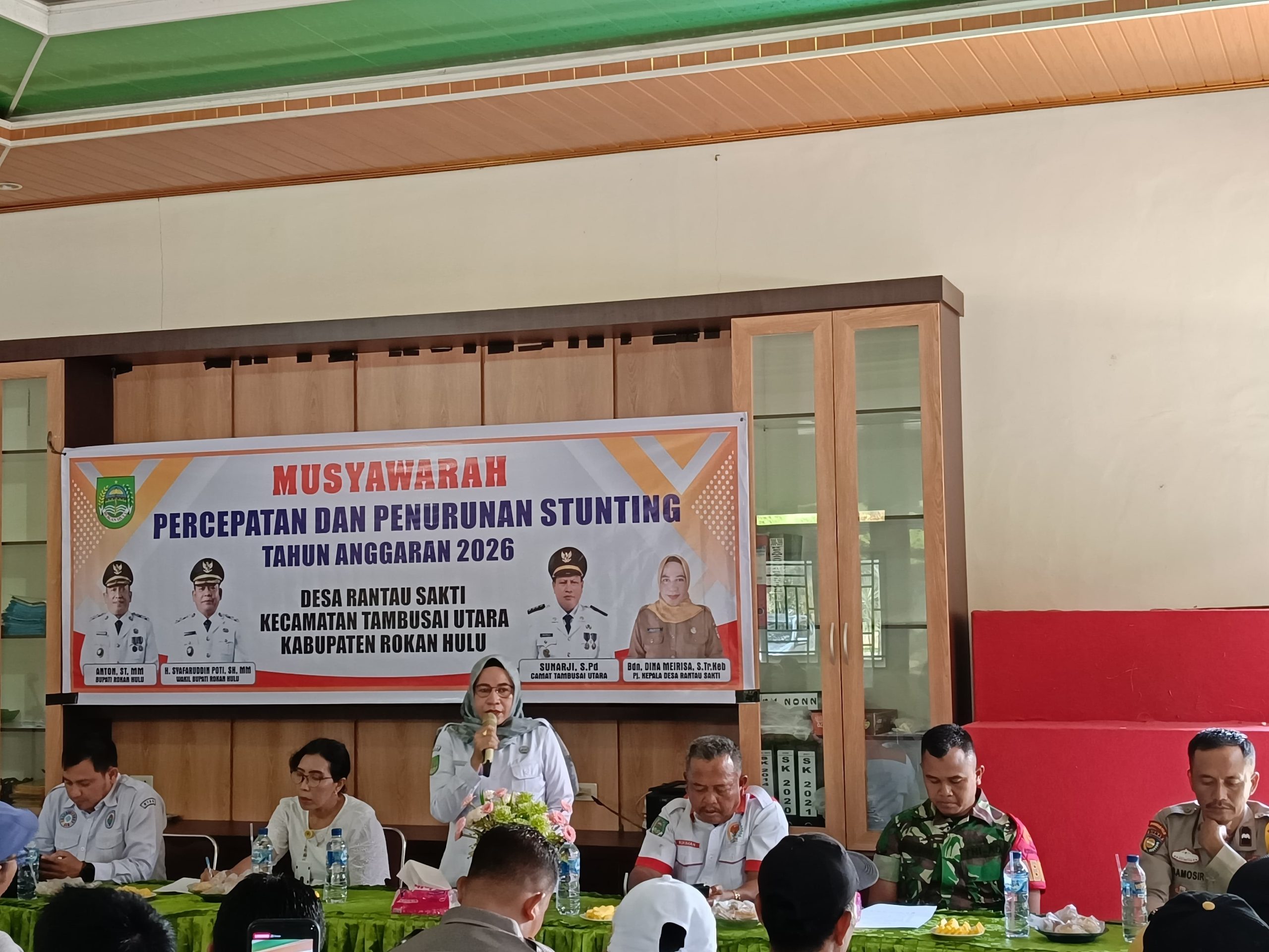 Rokan Hulu, reportaseindonesia.id |Babinsa Koramil 11/Tbs Kodim 0313/Kpr Serda Solihin menghadiri Musyawarah Percepatan dan Penurunan Stunting di Desa Rantau Sakti Kec. Tambusai Utara Kab. Rokan Hulu. Kamis (04/09/2025)