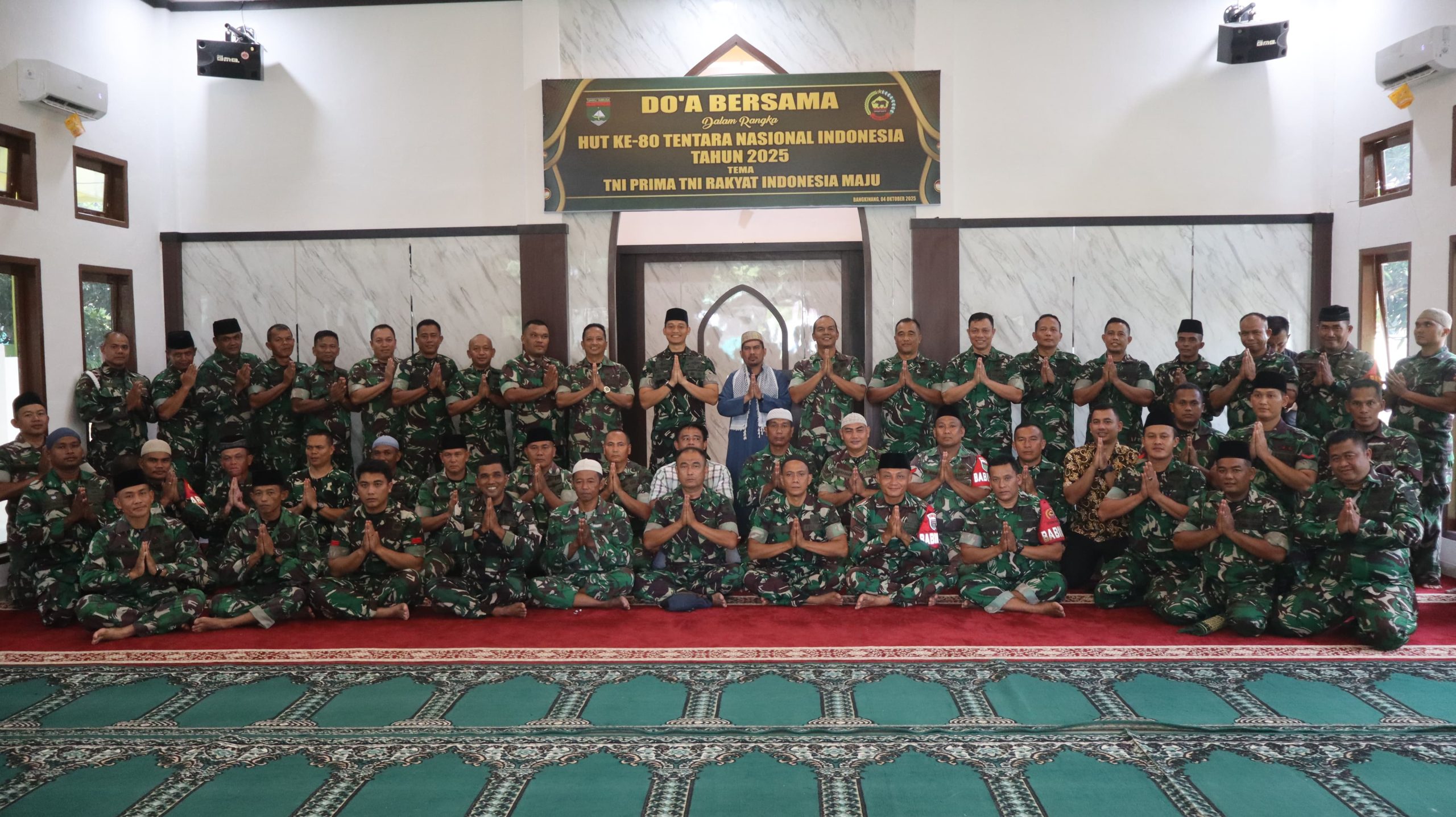 Kampar, reportaseindonesia.id|Salah Satu rangkaian peringatan Hari Ulang Tahun (HUT) ke-80 Tentara Nasional Indonesia (TNI) tahun 2025, Kodim 0313/KPR menggelar acara doa bersama yang penuh khidmat pada Sabtu, 04 Oktober 2025, Bertempat di Masjid At-Taqwa Kodim 0313/KPR,