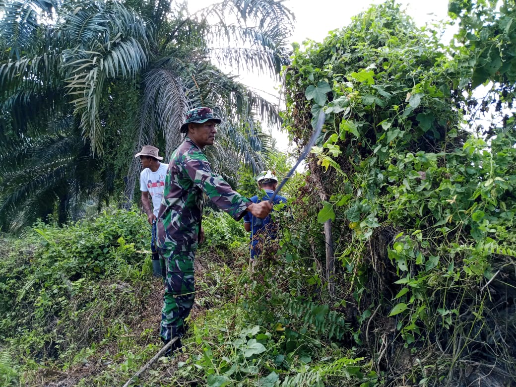 Kampar, reportaseindonesia.id |Personel Babinsa Koramil 07/Kampar Kodim 0313/KPR Sertu Dasroni bersama Perangkat Desa dan masyarakat melaksanakan gotong royong di Desa Tarai Bangun Kecamatan Tambang, Kabupaten Kampar, Minggu (26/10/2025).