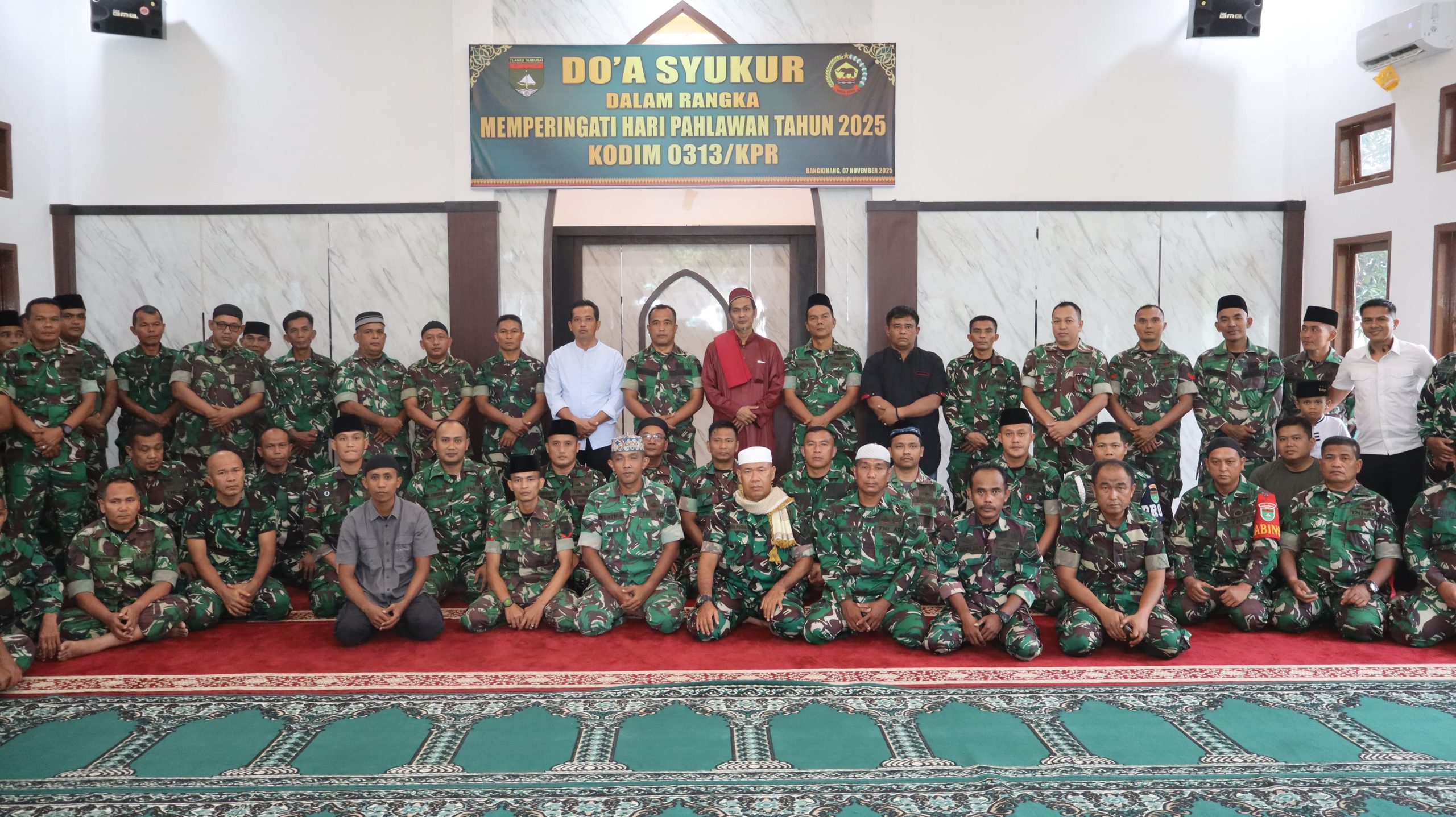 Kampar , reportaseindonesia.id |Dalam suasana khusyuk dan penuh penghormatan, Kodim 0313/KPR menggelar doa syukur peringatan Hari Pahlawan yang diperingati setiap tanggal 10 November. Bertempat di Masjid At-Taqwa Jumat, 07 November 2025, kegiatan ini menjadi momentum refleksi bagi seluruh anggota Kodim untuk mengenang jasa para pahlawan yang telah gugur demi kemerdekaan dan kedaulatan bangsa.