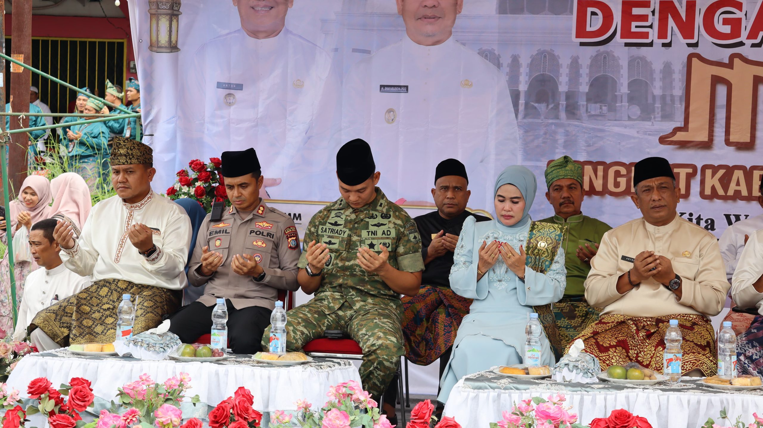 Tokoh-tokoh penting yang hadir meliputi Bupati Rokan Hulu, Anton, S.T., M.M., beserta istri; Dandim 0313/KPR, Letkol Czi Satriady Prabowo, beserta istri; Kapolres Rokan Hulu, AKBP Emil Eka Putra, S.I.K, M.Si; Wakil Bupati Rokan Hulu, Syafaruddin Poti, S.H., M.H., beserta istri; Sekda Rokan Hulu, Muhammad Zaki, S.STP, M.SI, beserta istri; serta Kepala Kemenag Rokan Hulu, H. Zulkifli, S.Ag, M.Pd.I, beserta istri.