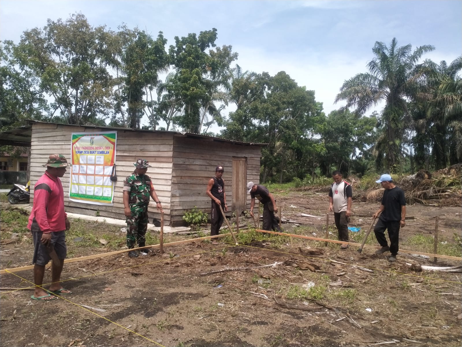 Kegiatan ini dilaksanakan saat Babinsa Serka Hendra Arena melaksanakan pengawasan percepatan pembangunan gerai Koperasi Desa Kelurahan Merah Putih (KDKMP) di Desa Bukit Sembilan.