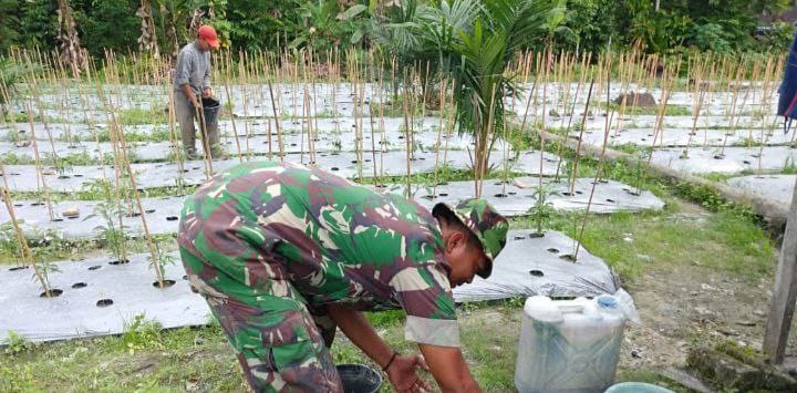 Babinsa mengatakan membantu petani dalam proses perawatan tanaman, seperti membersihkan gulma, memeriksa kondisi tanaman, dan memberikan masukan tentang cara pemupukan yang tepat,” kata Babinsa.