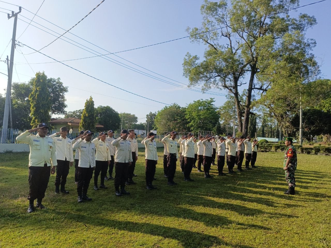 Rokan Hulu , reportaseindonesia.id |Personel Bintara Pembina Desa (Babinsa) Koramil 10 Kunto Darussalam Kodim 0313/KPR Serka Dedy Junianto, memberikan materi peraturan baris-berbaris (PBB) yang diikuti oleh seluruh personil Security PTPN IV Regional III Sei Rokan.