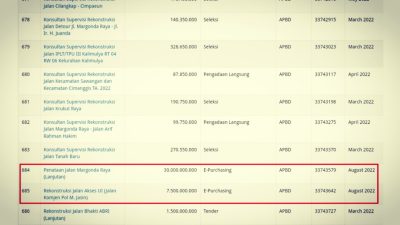 Depok,reportaseindonesia.id|Tiga proyek dinas PUPR Kota Depok mendapat sorotan dari LSM Gerakan Lokomotif Pembangunan (Gelombang). Pasalnya…